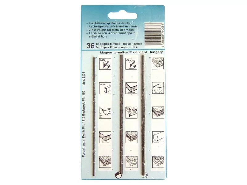 3 tucat lombfűrészszál készletben, 12 db fémhez, 12 db kemény fához, 12 db puha fához.