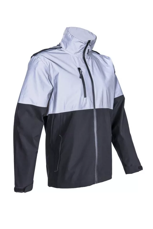 • 200 g/m2 vastag 2,5 rétegű Softshell fényvisszaverő alapanyag: 100% mechanikus stretch poliészter + PU membrán és nyomással mintázott kelme