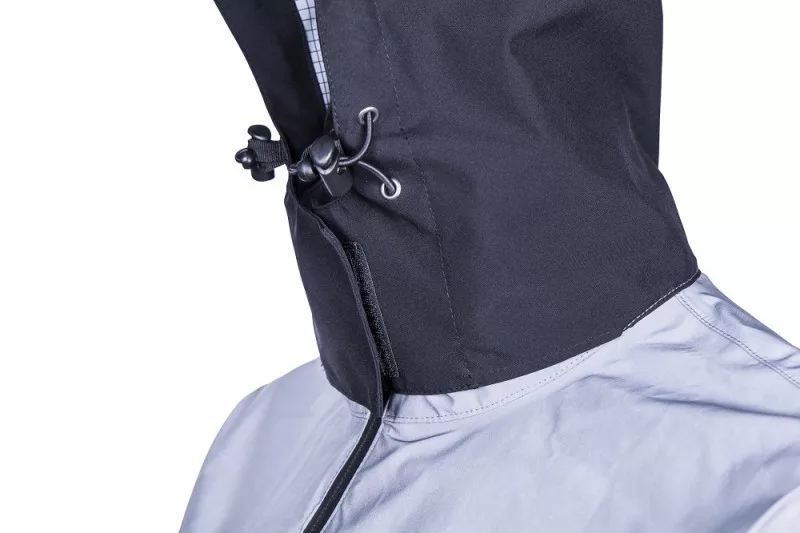 • a gallérba rejtett fényvisszaverős anyagú, tépőzárral és zsinórral állítható viharkapucni