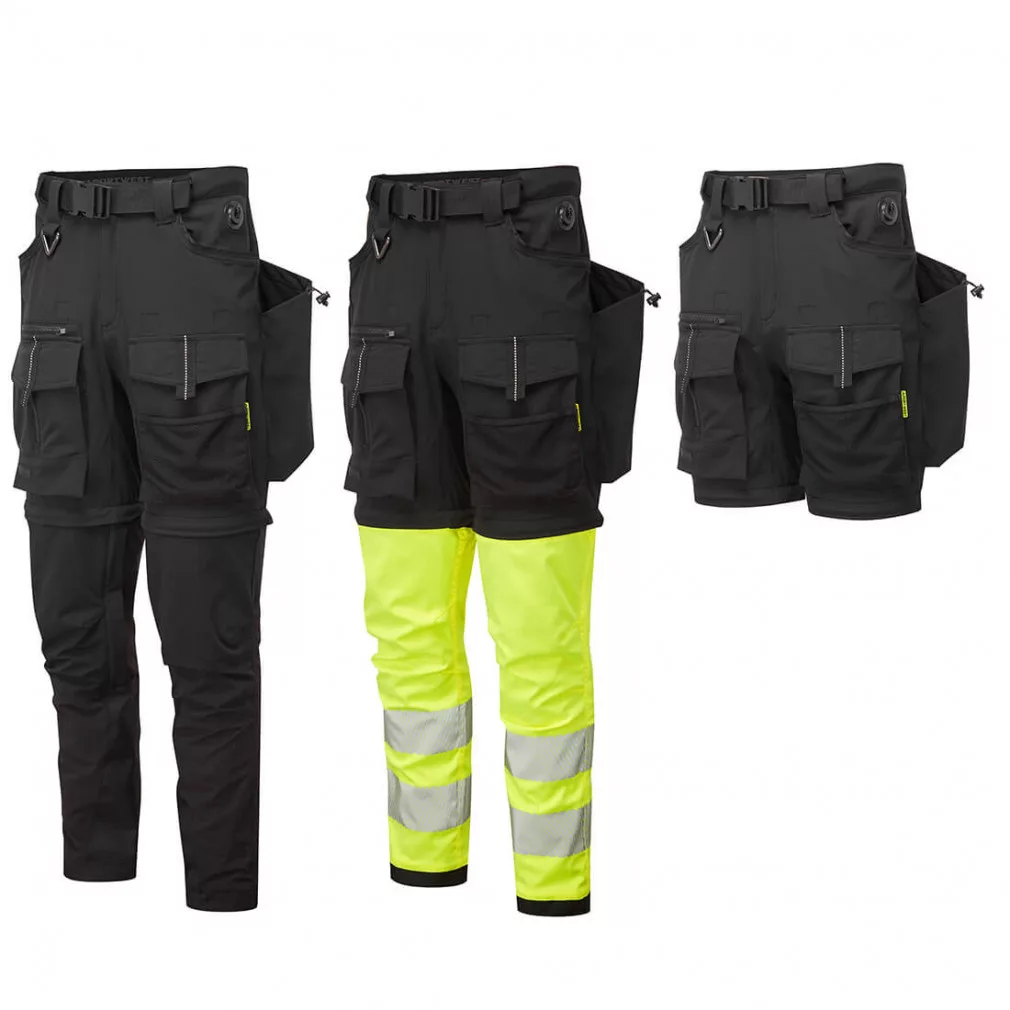 Az Ultimate Modular 3 az 1-ben nadrágkialakítás minden igényt kielégít. A 3 az 1-ben kialakítás a munkanadrágot rövidnadrággá vagy EN20471 1. osztályú munkanadrággá alakítja át. Mindened megvan, amire szükséged van Zsebek mágneses patentokkal vannak ellátva, hogy ne legyenek útban, térdpárna zsebek, nagy beépített oldalsó zsebek a nagy szerszámok, spray dobozok számára, vagy csak hajtsd fel a lábakat rövidnadrágos üzemmódban, és tartsd őket biztonságban. Beépített derékpánt, Lábszár elülső cargo zseb a könnyebb használatért munka közben, Hálós mobiltelefon zseb. Plusz az egyedülálló klipszes zsebrendszer a három zseb használatával, amelyeket a nadrág elejére vagy hátuljára lehet klipszelni. 4 irányban nyúló anyag a nagyobb mozgásszabadság és a kényelem érdekében. Slim fit design a kivételes komfortért, 15 sokoldalú, praktikus tárolózsebbel. Állítható derékrész a tökéletes illeszkedésért. B920,B921, B922 cikkszámon moduláris kiegészítő zsebek rendelhetőek.