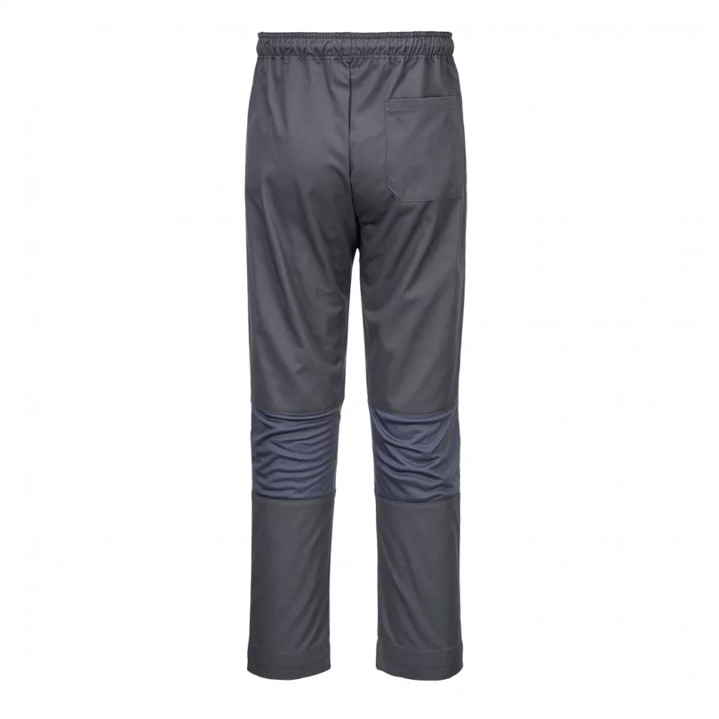 Ez a poliészter/pamut anyagú, slim fit kialakítású, séfek számára készült nadrág folyadéktaszító Texpel bevonattal van ellátva. A MeshAir Pro paneleknek köszönhetően maximális lélegzőképességet biztosít forró konyhai környezetben. Hátsó zsebbel, gumirozott derék húzózsinorral és tagolt térdkialakítással, valamint állítható szárhosszal, és lélegző hálós szövetbetéttel rendelkezik, amely tökéletes mobilitást biztosít.