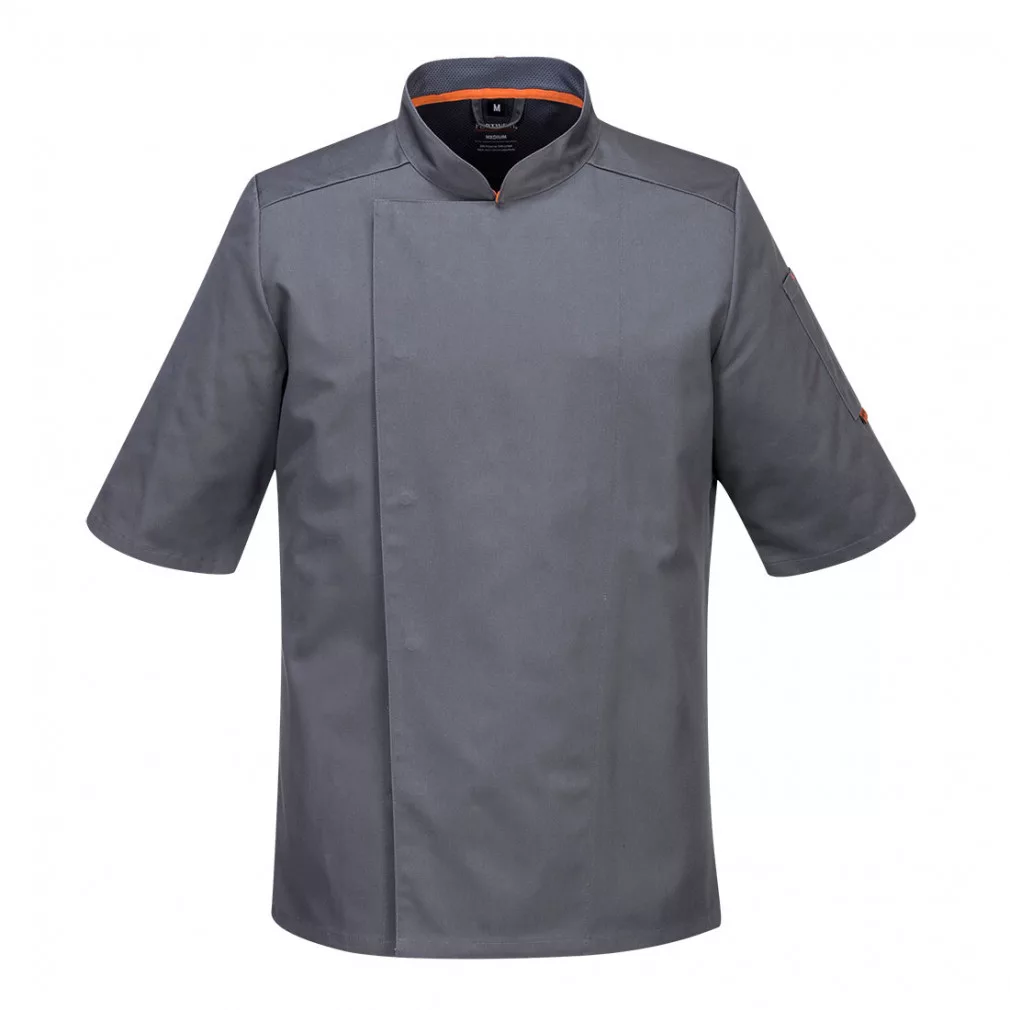 MeshAir panelekkel ellátott C738 ideális megoldás a forró konyhai környezetre. Dupla gombolású rejtett rögzítéssel és tollzsebbel. Stílusos és praktikus séfkabát. Rejtett patentos záródás Ujjzseb MeshAir™ szellőző hálós kialakítás Poliészter/Pamut Texpel szövet 1 zseb Mérettartó alapanyag Kötény akasztófül Slim fit