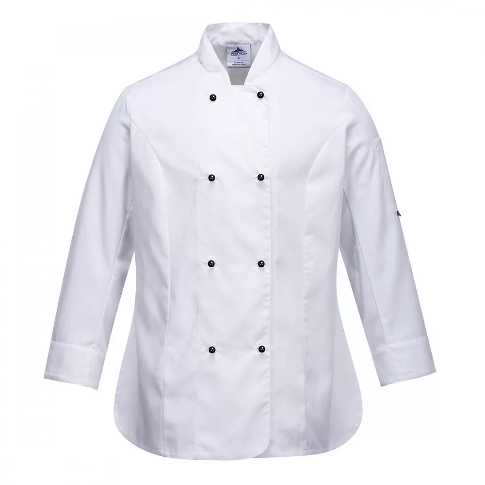 Kifejezetten hölgyek részére kialakított séfkabát mely a kényelem és funkcionalitás mellett kiválóan is illeszkedik. Oldal- mandzsetta- és MeshAir hónalj szellőző nyílásokkal. Stílusos kialakítás 4 sor megfordítható levehető gombokkal és praktikus zsebekkel rendelkezik.,Francia mandzsetta,Ujjzseb,Szellőzőnyílások,MeshAir™ szellőző hálós kialakítás,Mérettartó alapanyag,Tartós szövet,Négy soros gombolás