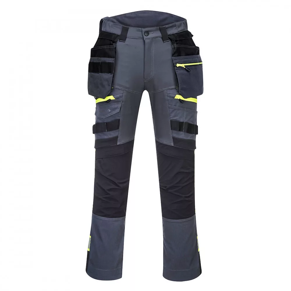 A DX4 lengőzsebes nadrág ergonómikus kialakítású mely dinamikus 4X stretch panelekkel biztosítja a maximális mozgásszabadságot. A nadrág emelt derék- és elasztikus oldalrésszel rendelkezik melyek kiváló komfortot biztosítanak minden munkapozícióban. Felülről behelyezhető térdpárna tartó zseb nagyméretű elülső és többfunkciós cipzáras zsebek biztosítják a telefon tollak és szerszámok biztonságos tárolását. A háromszoros varrások maximális tartósságot biztosítanak. UPF 50+ Új modell Vonalzótartó zseb Háromszoros varrás Kalapács hurok Egyedi innovatív zsebkialakítás Okostelefon tartó Többféle cipzáros rekesz Fényvisszaverő csíkozás Oldalt gumírozott derék Felső nyílású térdzsebek D gyűrű Többfunkciós tárolózsebek 16 zseb Hátsó cipzáras zseb Aktív illeszkedés Állítható szárhossz Minden fontos helyen megerősített Két rétegű térdvédő zsebek HiVisTex Pro fényvisszaverő szalag Megerősített panelek 4 utas rugalmas anyag Regisztrált európai közösségi design Modern ergonomikus kialakítás Magasított derék Ágyék erősítés cipzár húzó Portwest logóval