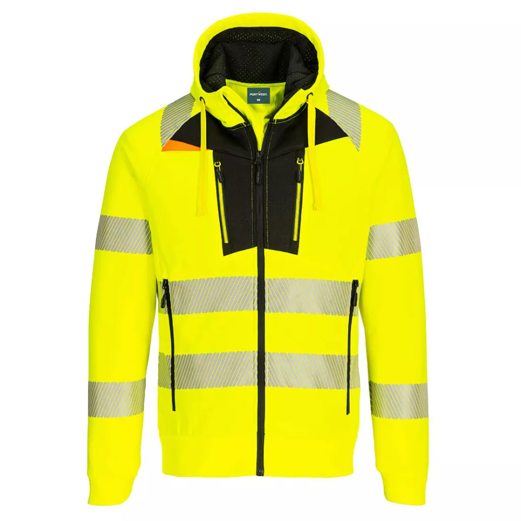 Portwest - DX4 Hi-Vis kapucnis pulóver (sárga/fekete S)
