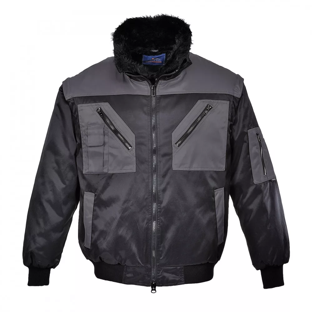 Stílusos és praktikus, kéttónusú pilótakabát, mely kiválóan használható átmeneti kabátként, illetve mellényként is. Négy különböző funkcióban viselhető. Egész évben alkalmas, négyévszakos munkavédelmi kabát modell, vízlepergető bevonattal. Extra komfortot nyújtó magas pamut tartalommal készül, sokoldalú megoldásokkal: levehető ujjak és gallér, kivehető szőrmebélés, 6 sokoldalú, praktikus tárolózseb, meleget és extra komfortot biztosító bordás mandzsettával. A kétutas cipzár az egyszerű hozzáférést segíti elő. Az UV sugárzás 96 %-át blokkolja (anyaga 50+ UPF értékkel rendelkezik). Ez a kéttónusú munkaruha modell tulajdonságaiban megegyezik a PJ10 cikkszámú típussal.