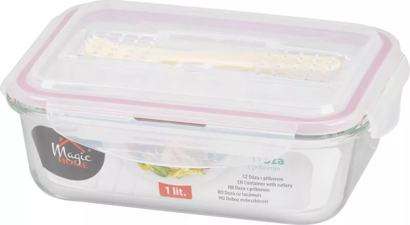 A MagicHome 1000 ml űrtartalommal ideális az élelmiszerek tárolására és szállítására. A Clip zárórendszernek köszönhetően a tartalmat biztonságosan lezárja, a beépített evőeszköz pedig nagyszerű kiegészítő a kényelmes étkezéshez útközben.