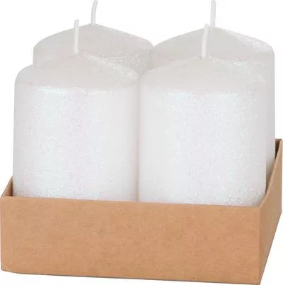 Gyertya MagicHome Karácsony, 4,8x8 cm, hengeres, csomag 4 db, fehér, csillámokkal, adventi
