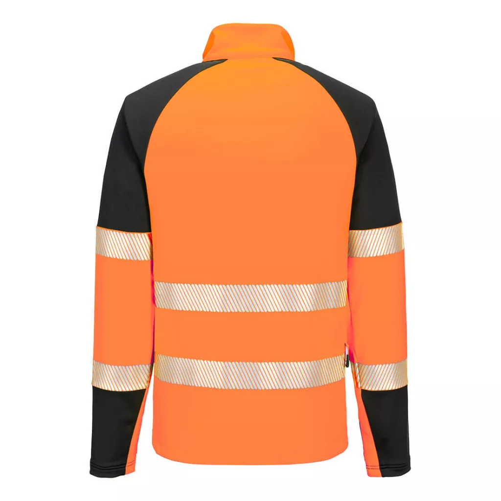 Légáteresztő, kiváló nedvességelvezető képességű, nedvességszabályozó és Acti-Reach™ innovatív egypaneles kialakítású (növeli a kar és a törzs mozgásszabadságát nyújtás, irányváltás és forgatás közben) 1/4 hosszúságú cipzárú jól láthatósági pulóver, amely a biztonságos illeszkedésért ujjnyílással, minden cipzárhoz kiváló tapadású húzóval, az optimális illeszkedésért raglán ujjakkal, a tökéletes komfortérzetért állvédő belső hajtókával, a hozzáadott jól láthatóságért hőillesztett, szegmentált fényvisszaverő szalaggal, a biztonságos tárolás érdekében 1 zsebbel, 40 UPF minősítésű alapanyaggal (az UV-sugarak 98%-át blokkolja), EN ISO 20471 szabvány szerint 25 mosásra minősítéssel és CE minősítéssel rendelkezik.