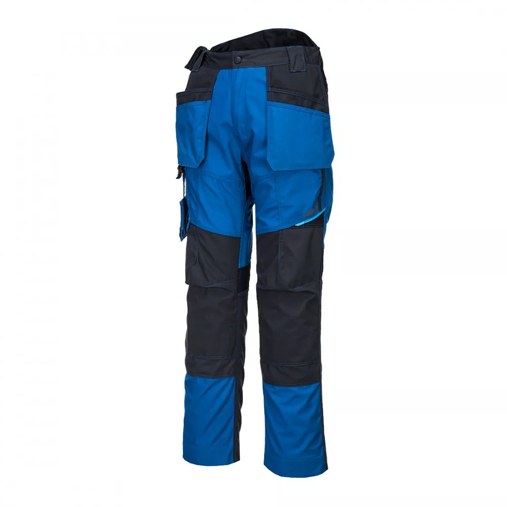 A Portwest WX3 TM modern munkaruhák ötvözik a kényelmet és a sokoldalúságot. A Kingsmill Polycotton Canvas alapanyag 65% poliészterből és 35% pamutból készül, barackhéj bevonattal. Ez az összetétel kiváló tartósságot és teljesítményt nyújt. A legmodernebb anyagból készült ruhadarabok rendkívül puha kiképzése biztosítja az egész napos kényelmet. Az előállítás során alkalmazott hosszú vágott szálak strapabíróságot és kiváló minőségű felületet biztosítanak. UPF 50+ minősítéssel rendelkezik, az UV sugarak 98%-át blokkolja. Lengő szerszámtartó zsebekkel ellátott, modern ergonomikus kialakítású deréknadrág, magasított derékrésszel. Innovatív rugalmas panelek a kulcs fontosságú részeken, melyek kiváló kényelmet és rugalmasságot biztosítanak viselőjének. Háromszoros varrás a kiemelkedő tartósságért, ágyék erősítés a kopás elkerülésének érdekében, állítható szárhossz 5cm-es állítási lehetőséggel.