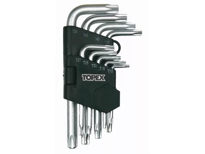 A TOPEX rövid Torx kulcsok nagy ellenállóképességű, a terméknek hosszú élettartamot biztosító króm-vanádium acélból készülnek. A praktikus, mindegyik kulcsnak külön megjelölt rekesszel rendelkező műanyag tok megkönnyíti a tárolásukat. A TOPEX márka ezermestereknek készül.